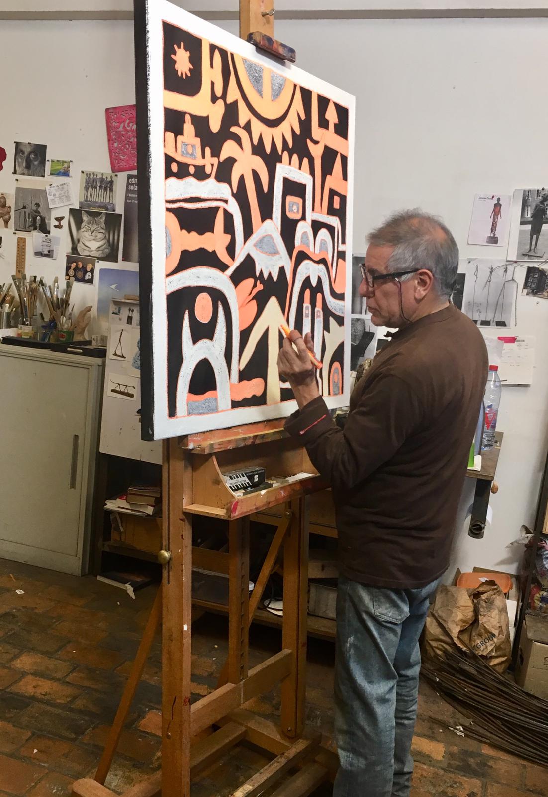 Depuis quelques années, il prend le temps de sortir de son atelier ses croquis, ses esquisses, ses peintures ou encore gravure. On retrouve dedans son univers graphique, ses couleurs, ses dessins qui nous invitent au voyage, à découvrir ses origines sud américaines.