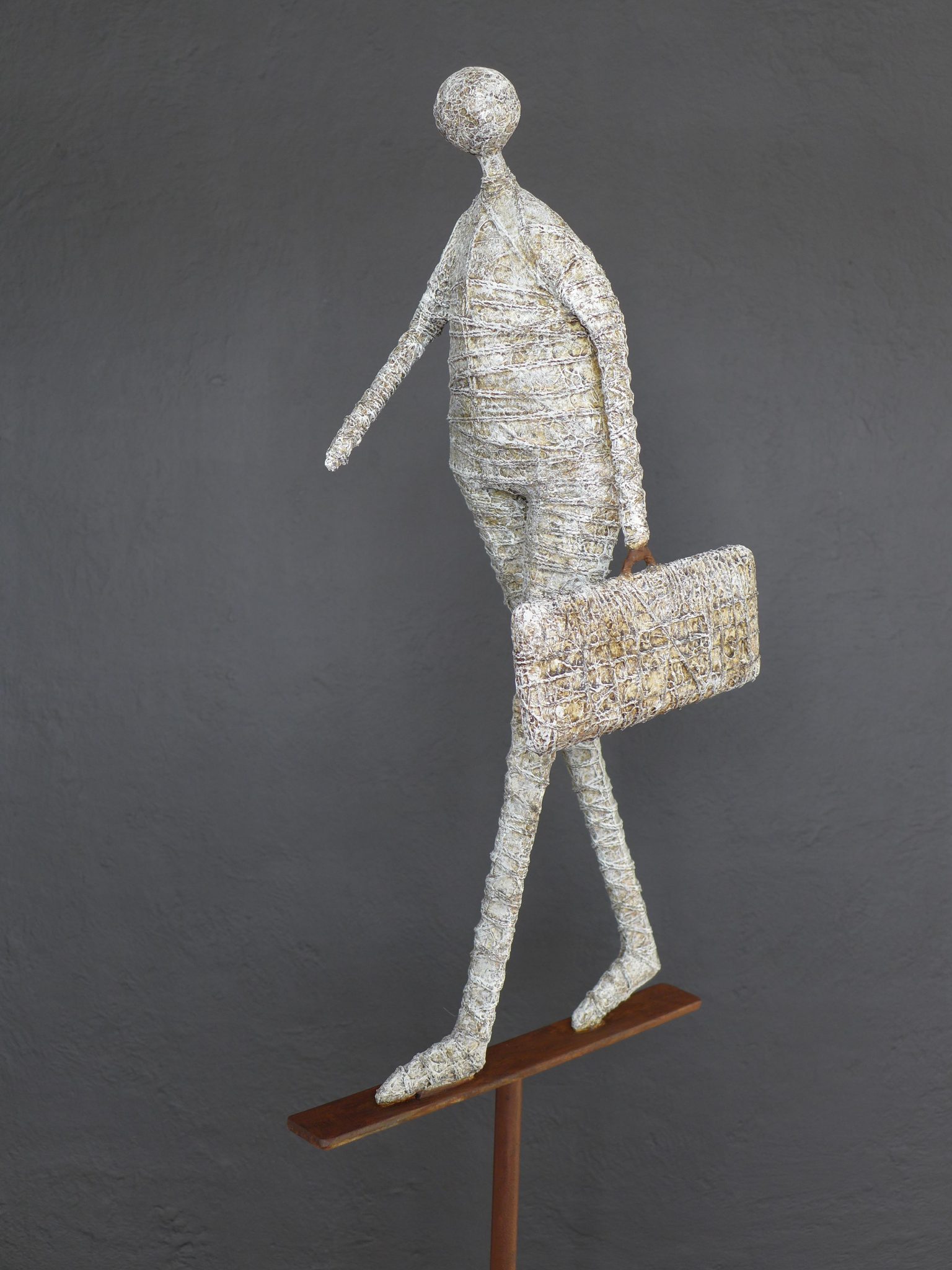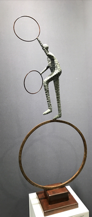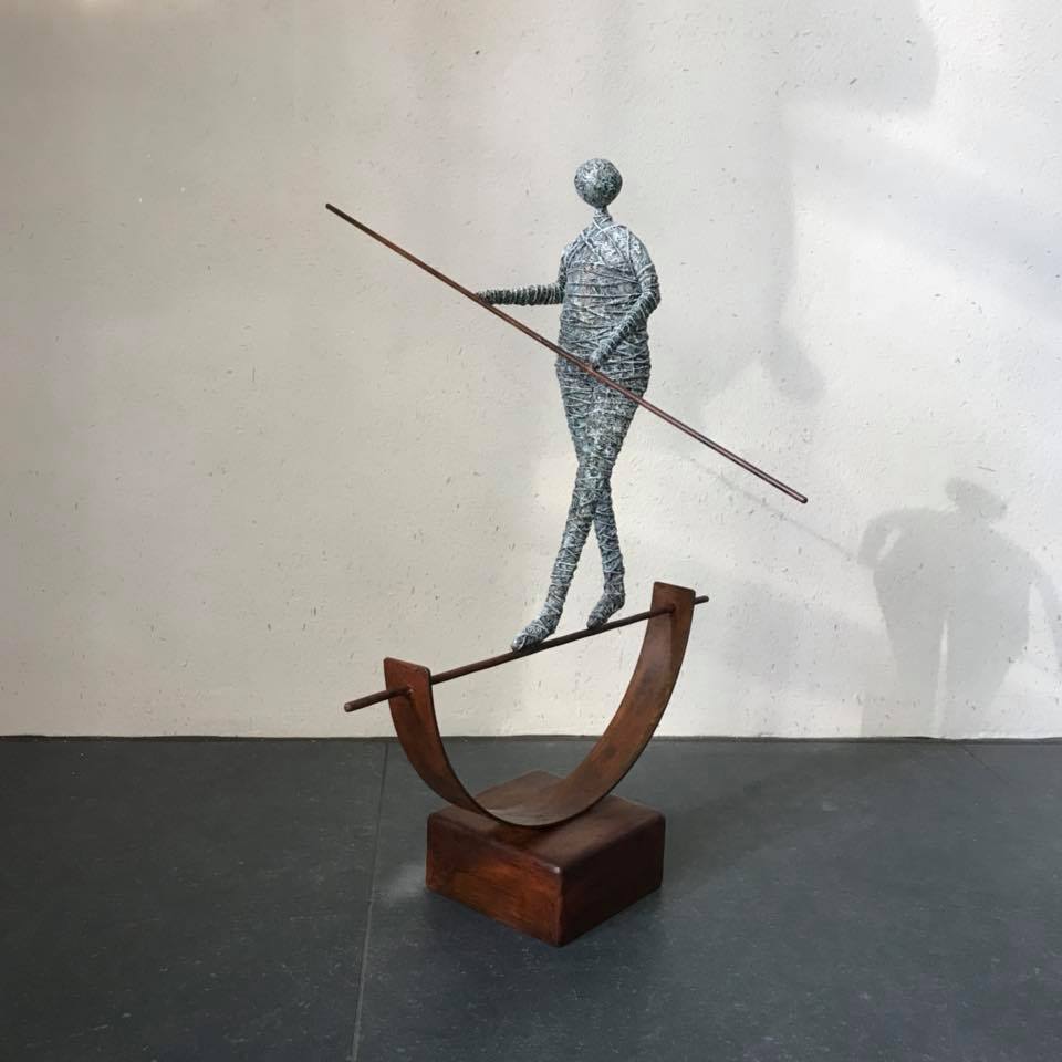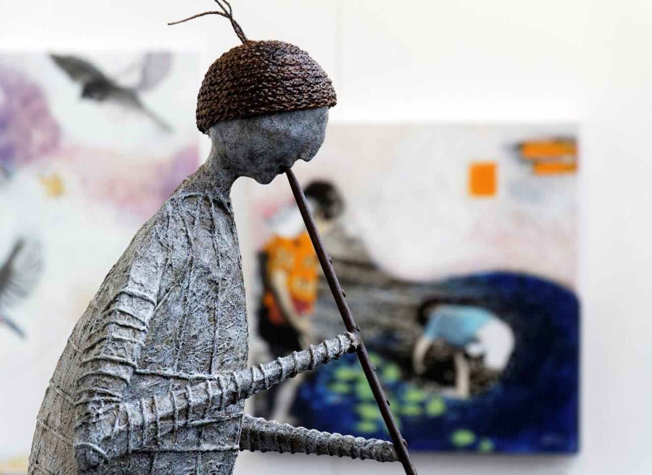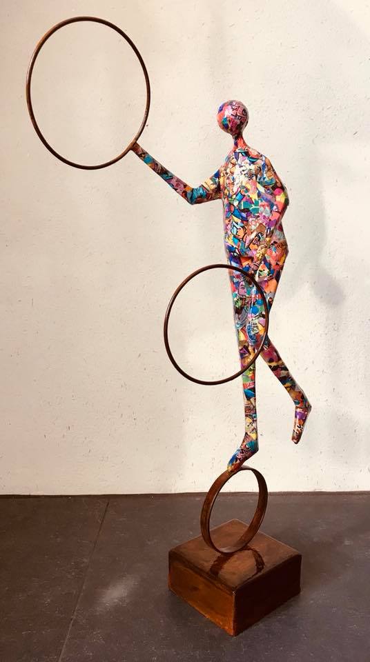 Dans son œuvre, présente dans de nombreuses collections privées et publiques, il met en scène des personnages qui illustrent à merveille la fragilité de la vie. L’acrylique, le métal constituent les fenêtres d’un univers personnel fait de petits riens, qui assemblés, fascinent les sens. Et quoi de plus émouvant qu’un morceau de vie ?