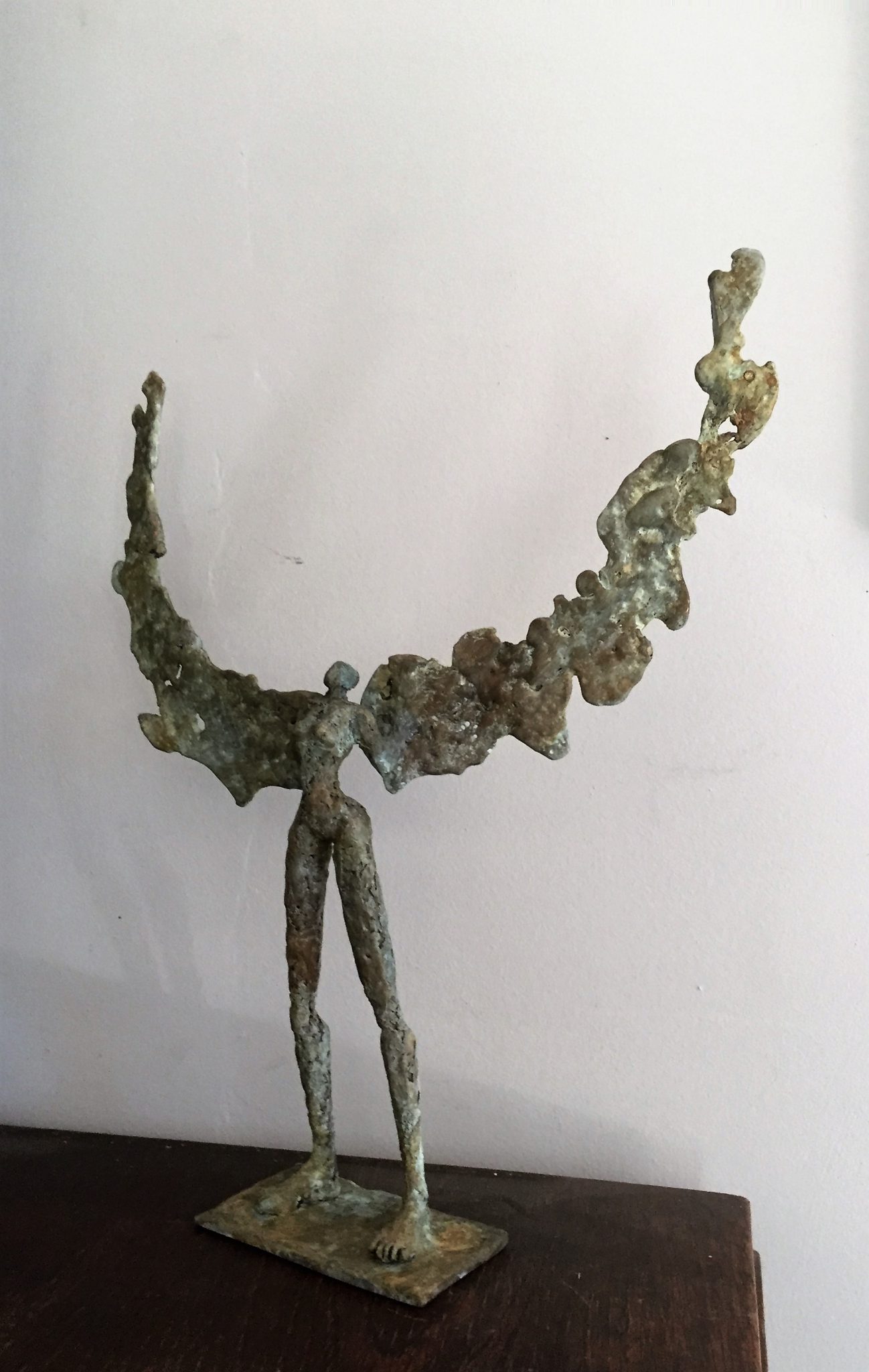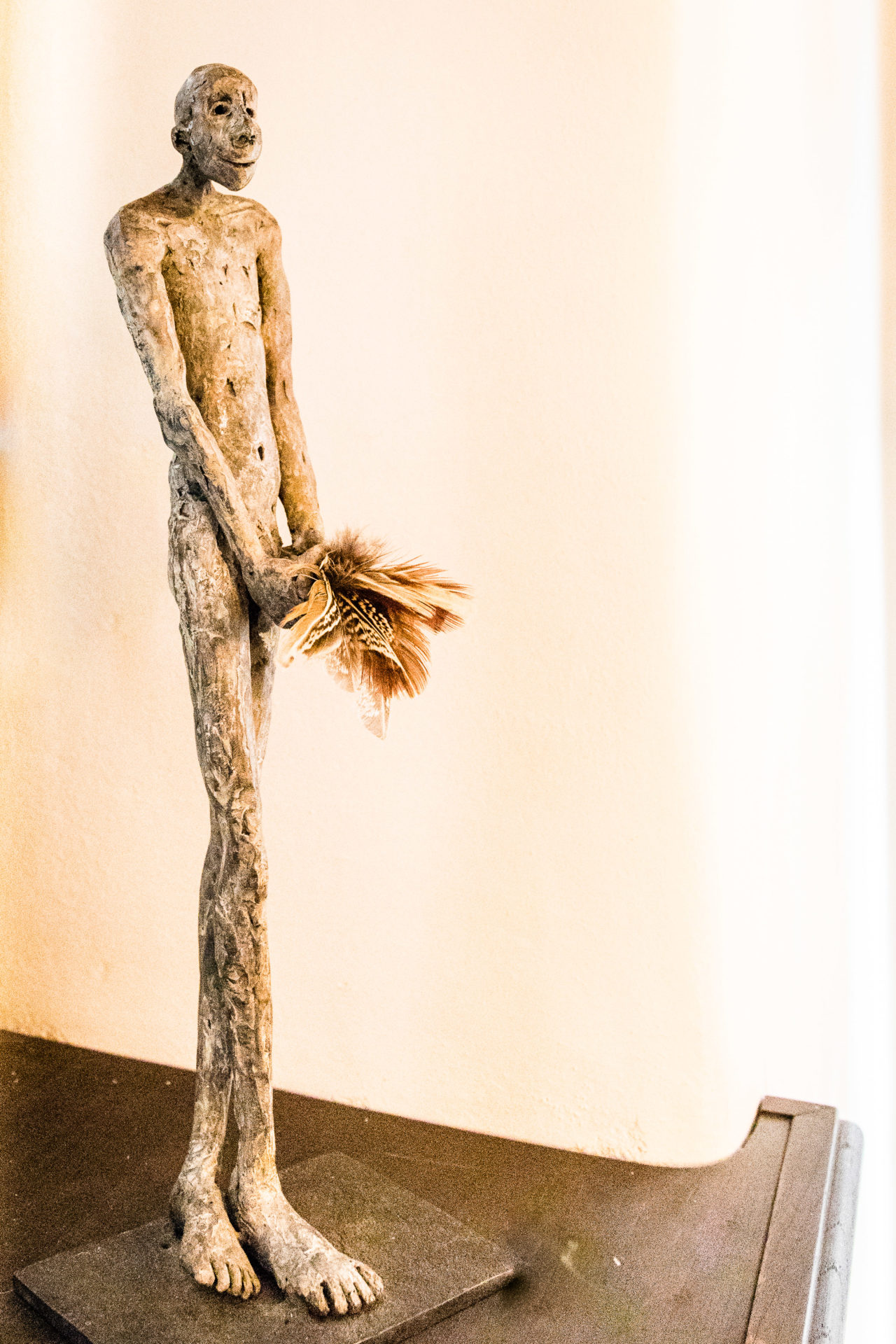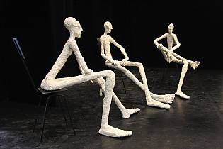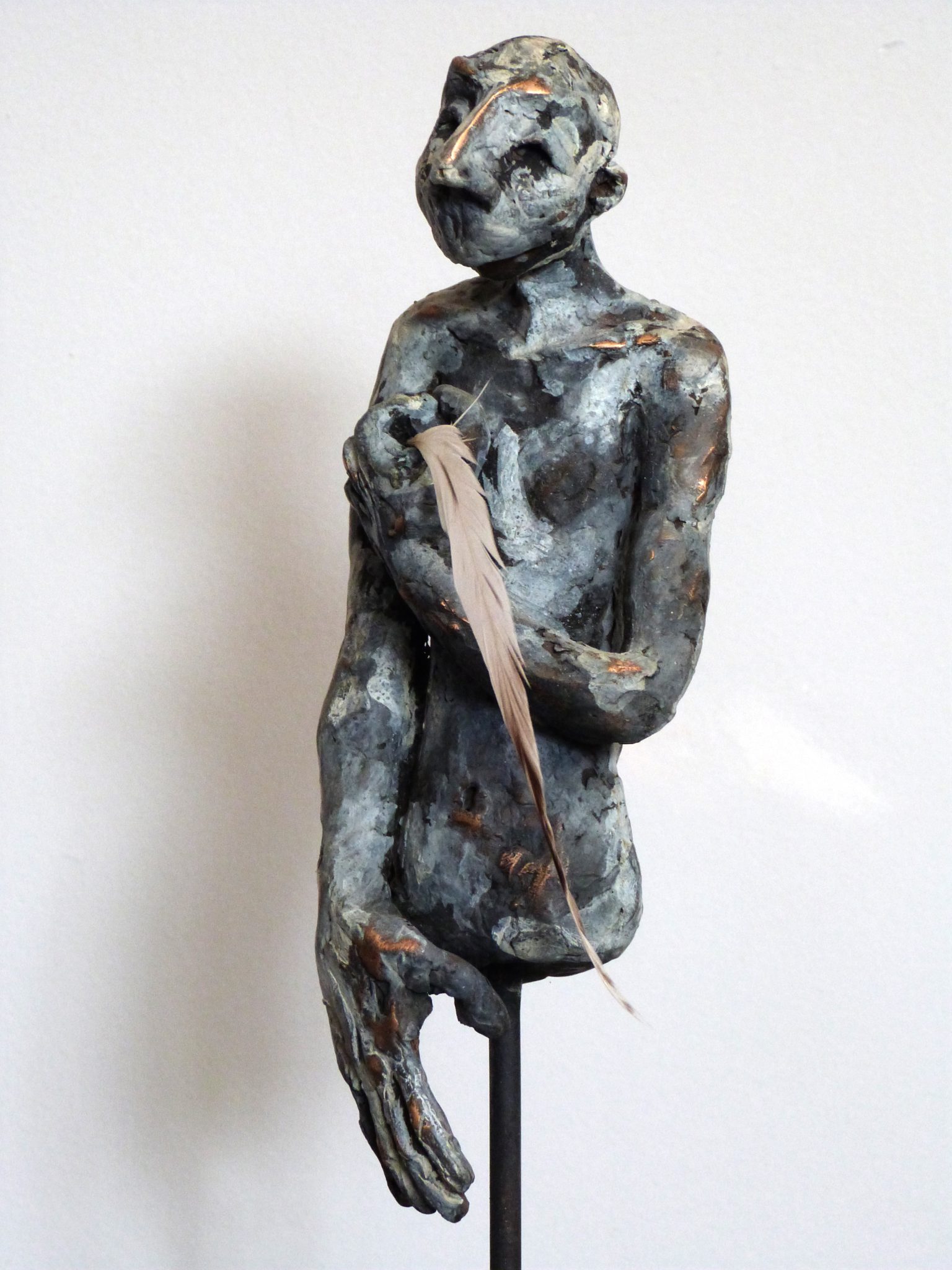 Avec ses sculptures en grès ou en bronze, nous entrons dans un monde irréel, où l’imaginaire et la matière font connaissance et se marient parfaitement. La fausse fragilité de la porcelaine se pose sur l’acier.  La chaleur du bois frôle une partie en bronze. Il y a une réelle sensibilité dans les postures des corps, le mouvement du cou des volatiles au grand bec…