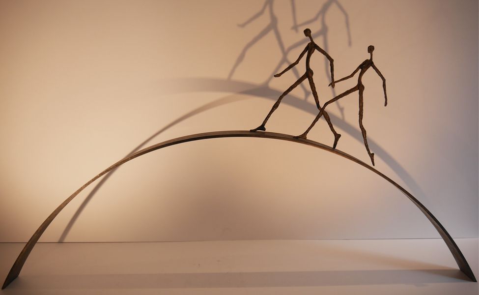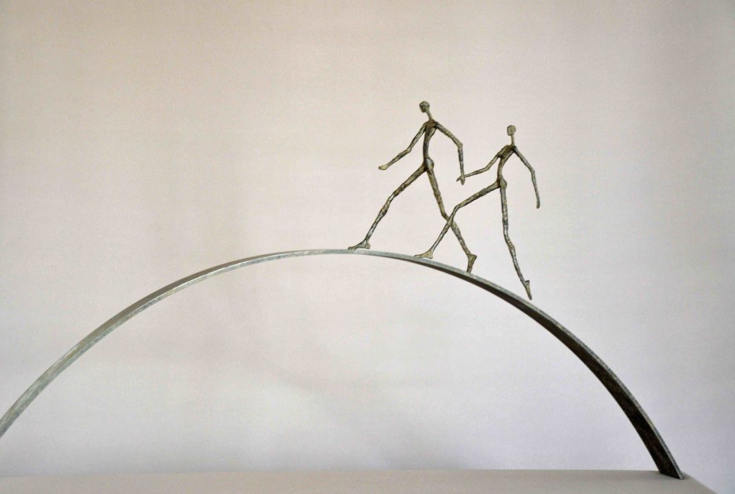 Mais les sculptures de Sylvie Mangaud c’est aussi une disproportion volontaire qui rend l’ensemble harmonieux avec des jambes qui s’étirent à l’infini, alliant longueurs des lignes et douceurs des courbes. Les visages restent lisses, laissant les corps parler, délicatement sensuels mais jamais impudiques.