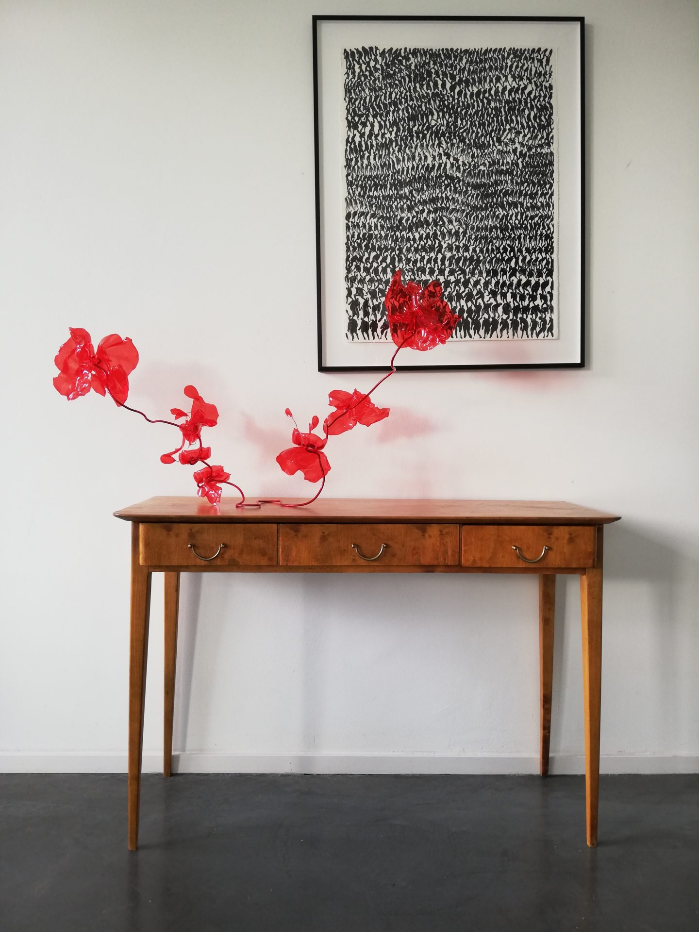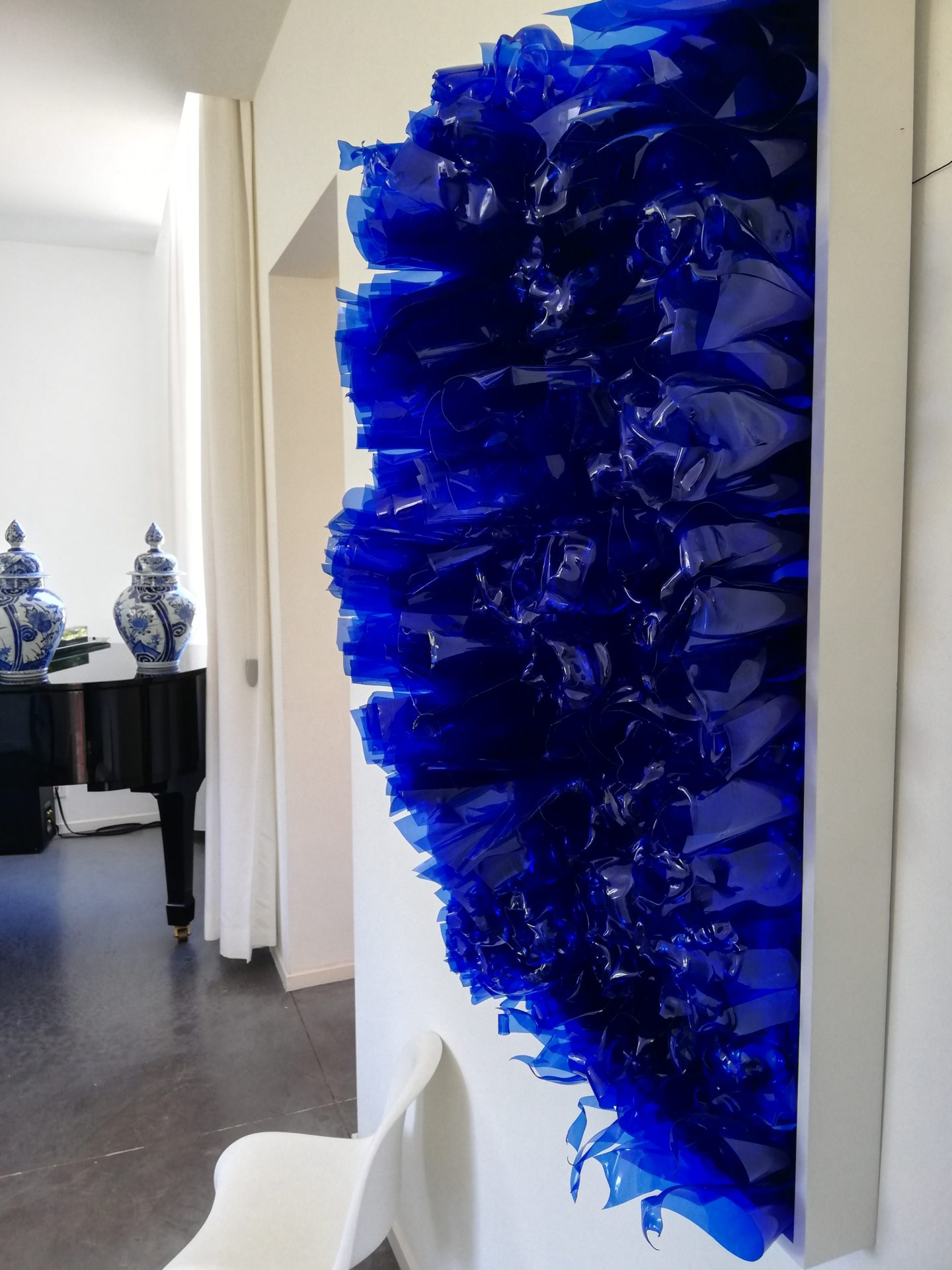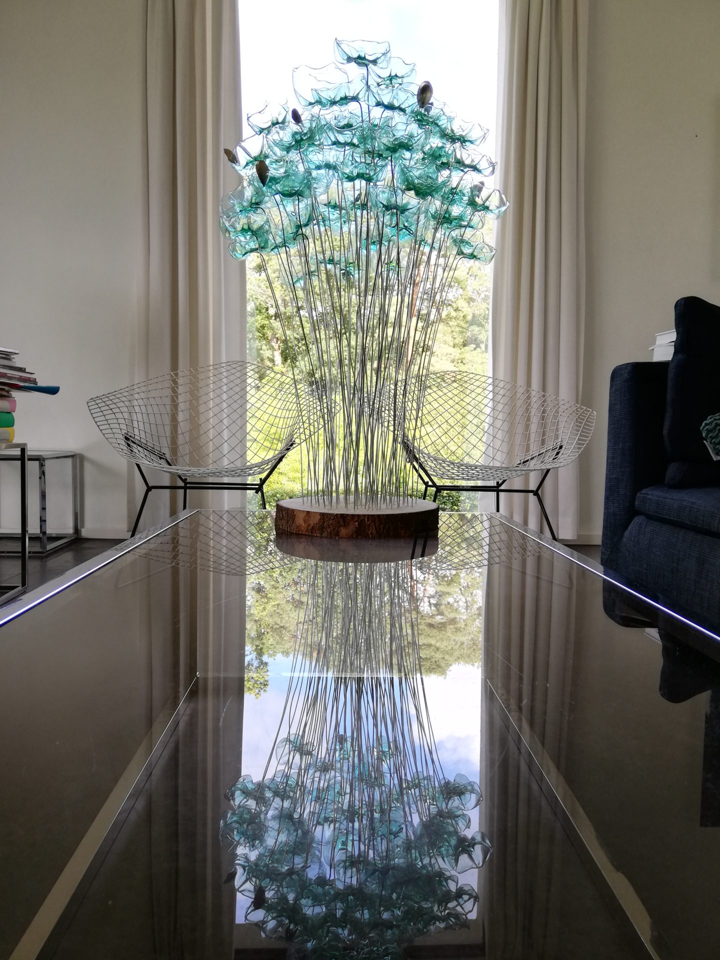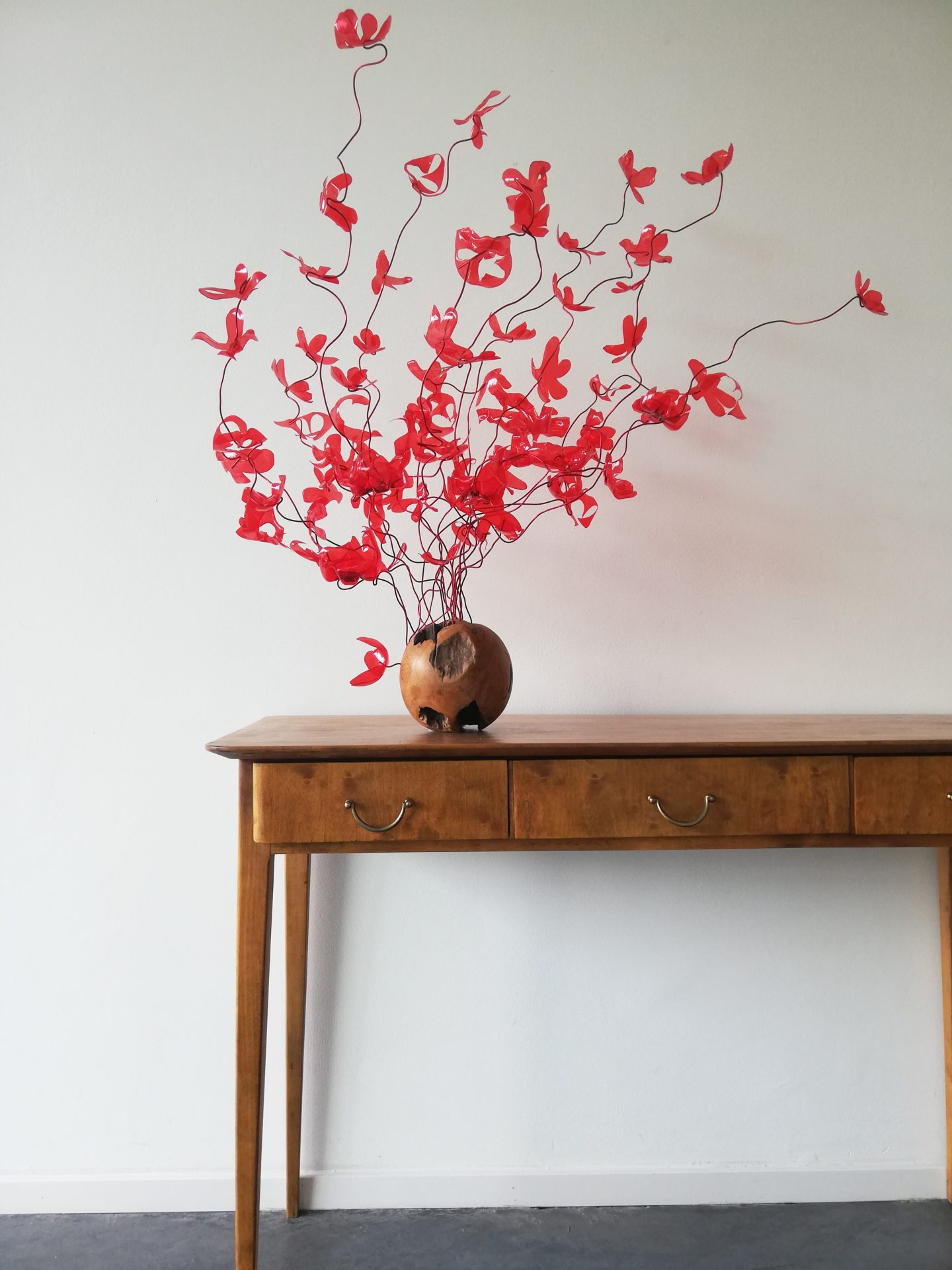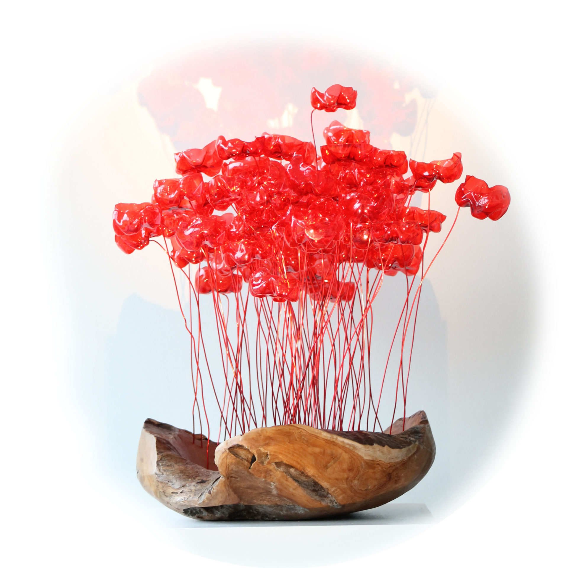 Par ce travail artistique, au-delà d’une esthétique qu’elle souhaite poétique, Tamara Greindl interroge d’une part les liens entre l’homme et la nature et, d’autre part, questionne le paradoxe d’un déchet négligé qui devient finalement matière noble et source d’inspiration.