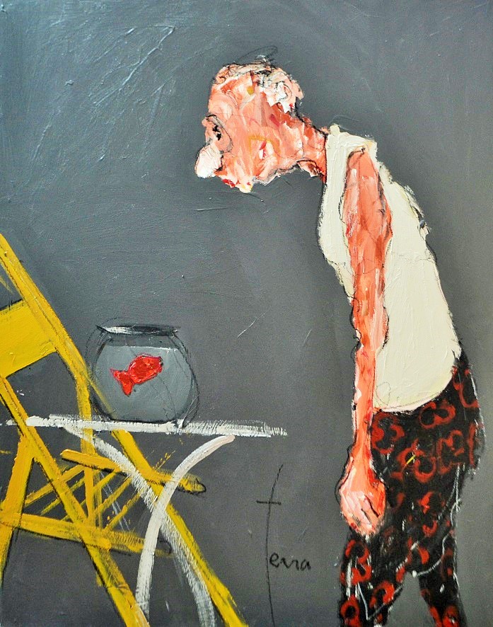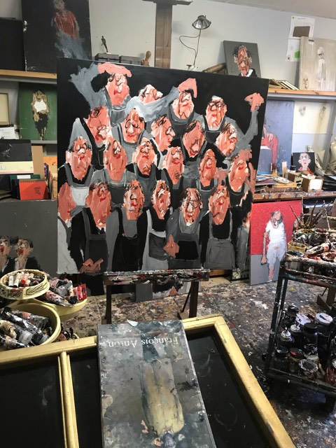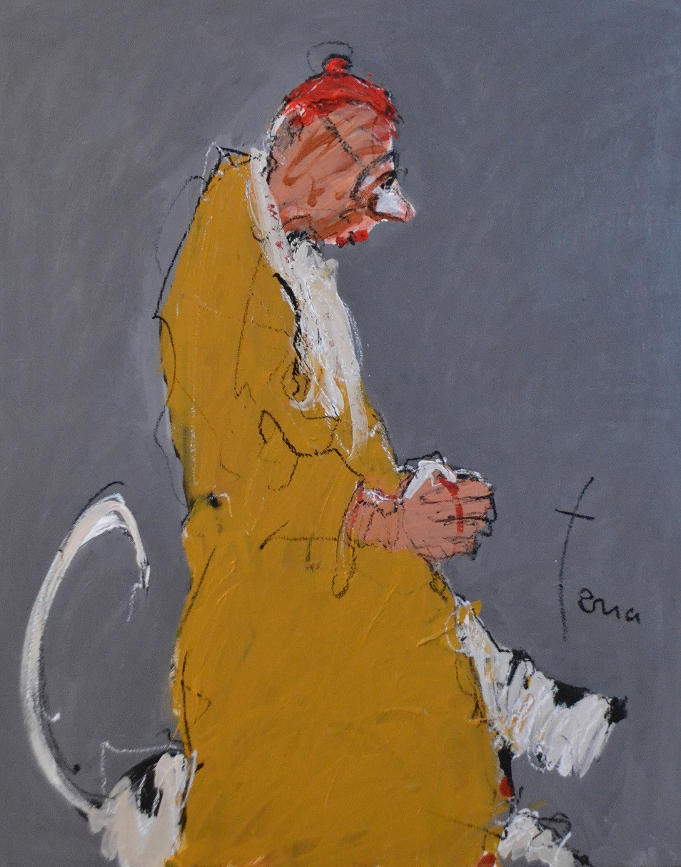 Béatrice Terra peint essentiellement des visages, des hommes. Elle ne souhaite pas m’égarer dans l’étude de la couleur, de sa représentation ou de sa symbolique. Sa palette est sobre et tout ce qui pourrait perturber la lisibilité d’une toile ou d’un dessin irait contre cette volonté de capter la vie.