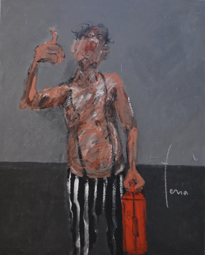 L’homme au sens masculin du terme est son sujet de prédilection, il l’émeut par sa sensibilité. Ces hommes viennent de nulle part. Elle n’a jamais de modèle. Béatrice Terra fais doucement leur connaissance au fil des tâches ou des traits qui les transforment. Elle n’est qu’aux prémices de cette représentation et n’est pas las de traiter ce sujet pour lequel elle voue une fascination inépuisable.